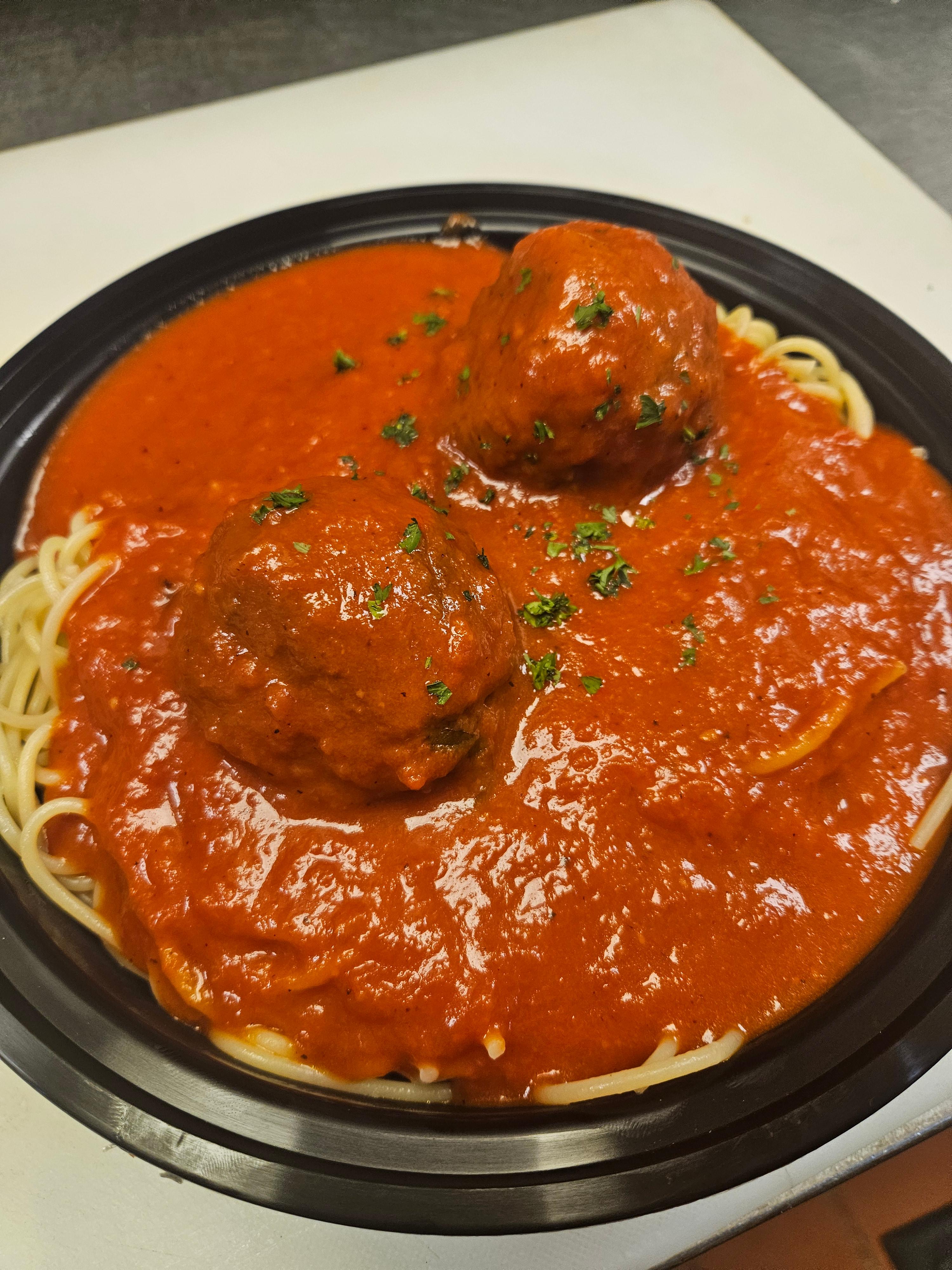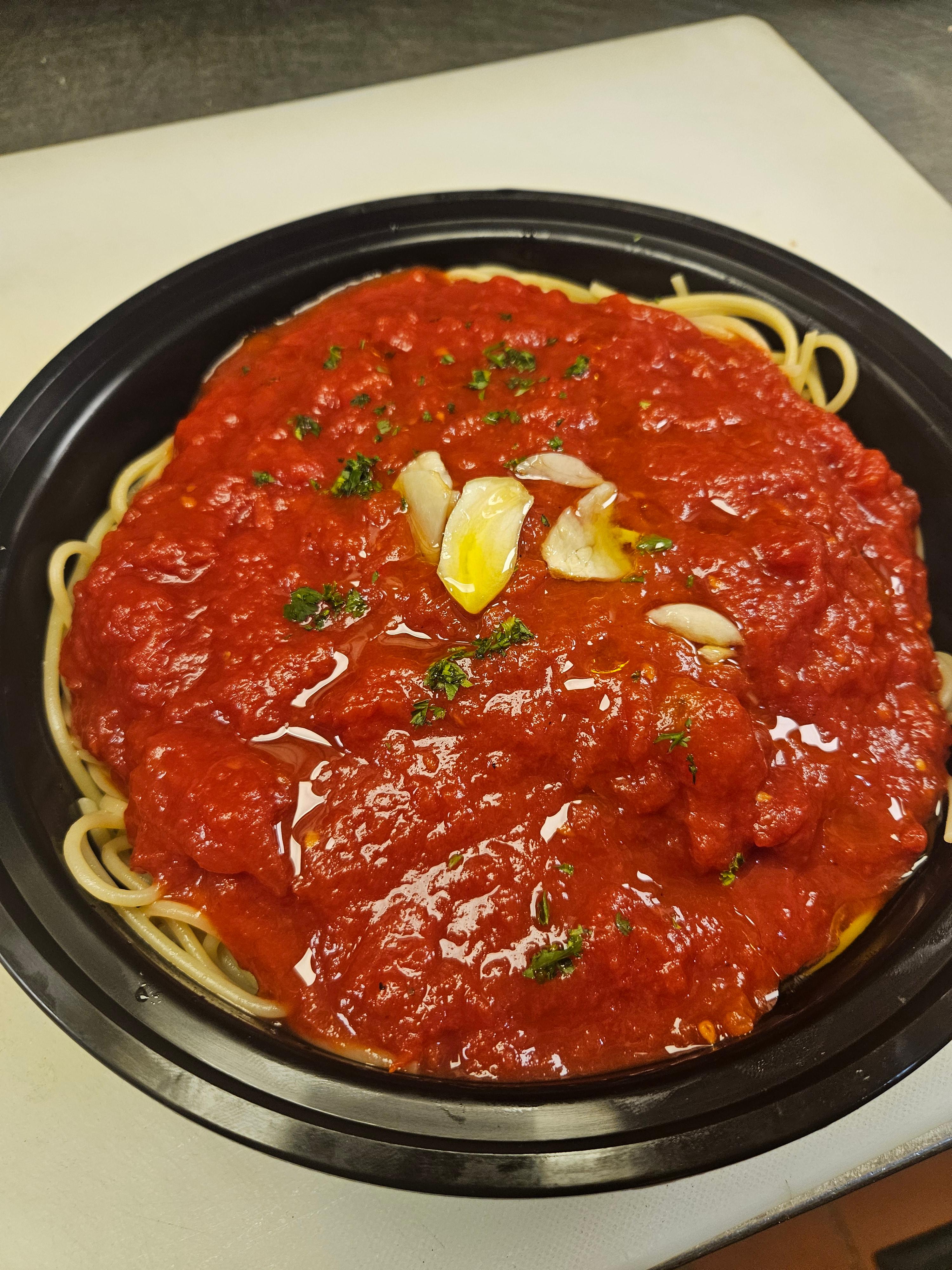 WITH TOMATO SAUCE AND MOZZARELLA. SERVED WITH A SIDE OF PASTA AND DINNER SALAD