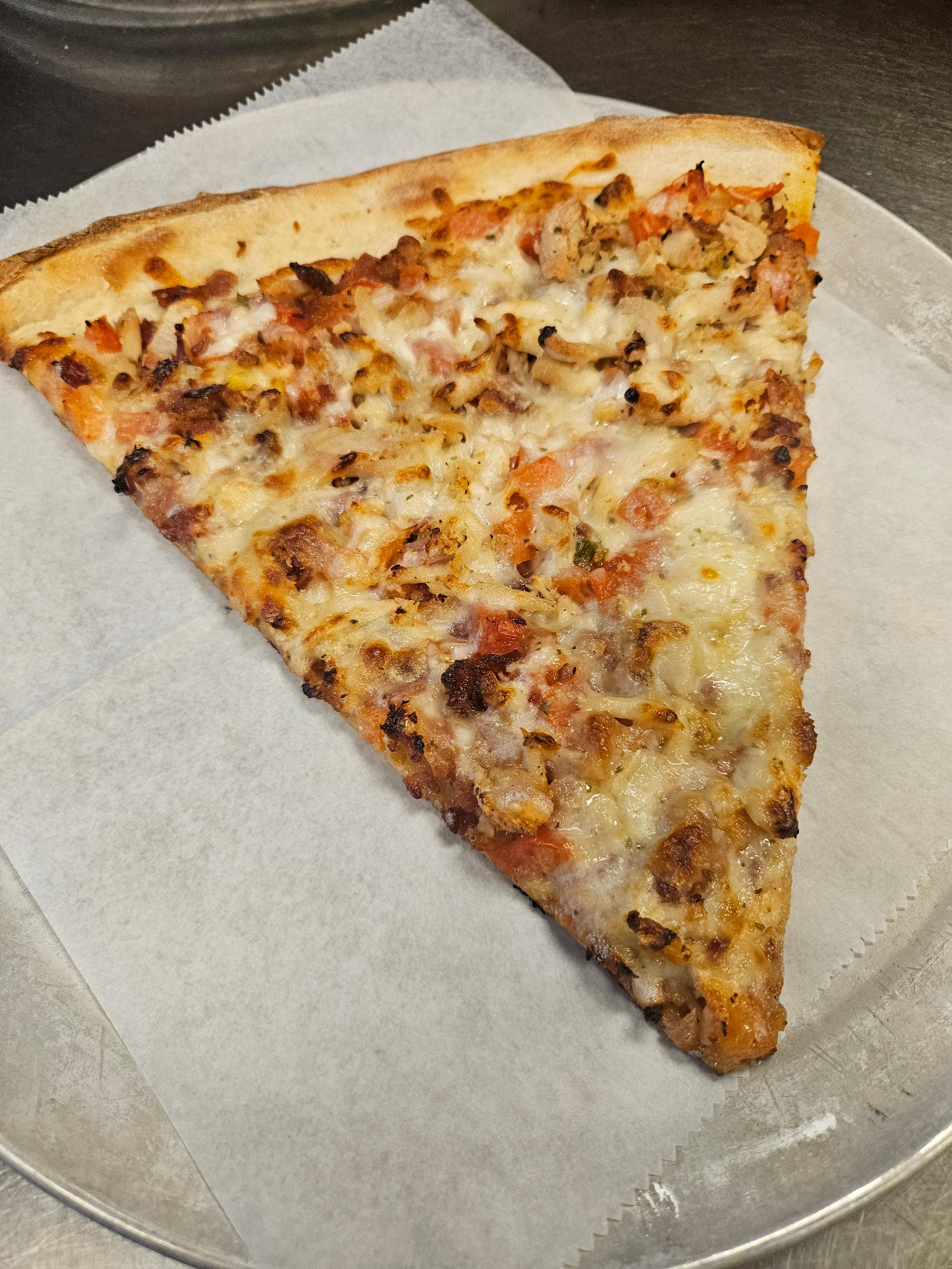 tomato, red onions, scallion, broccoli, garlic, basil, grilled chicken, mozzarella