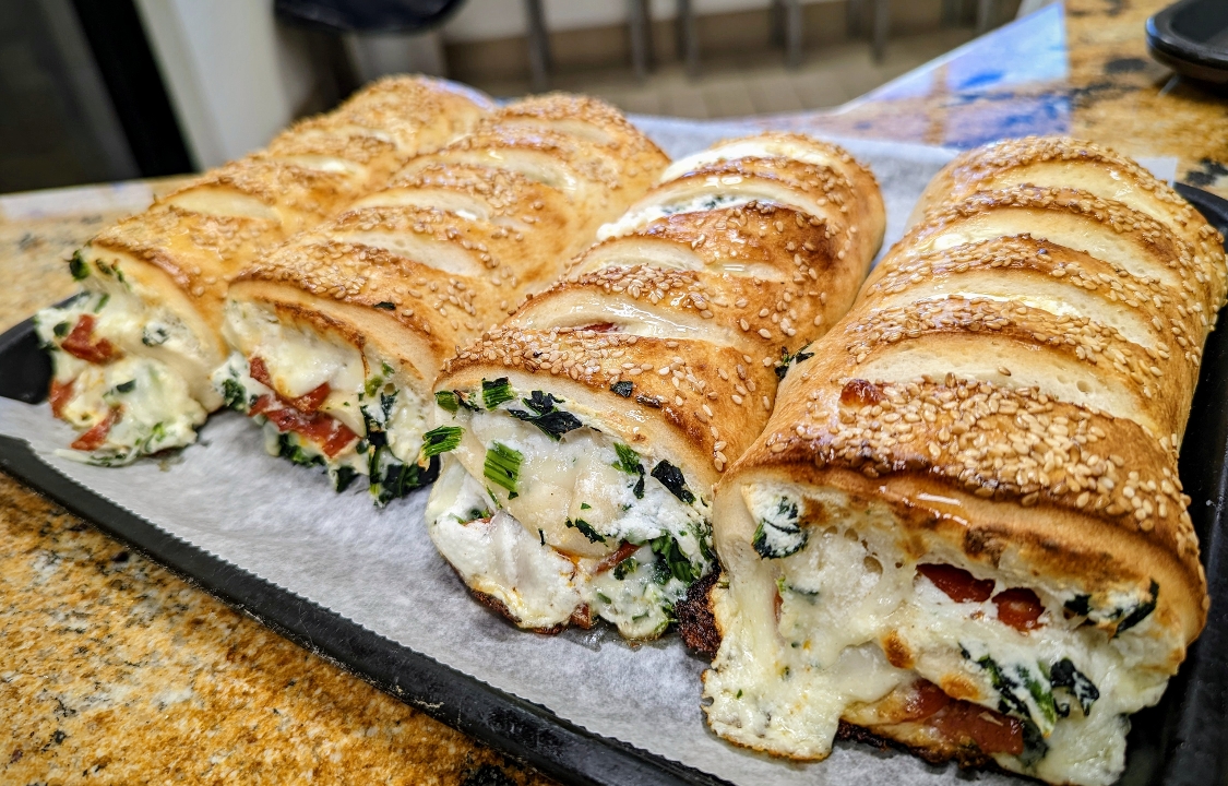 spinach, ricotta cheese, pepperoni, mozzarella cheese